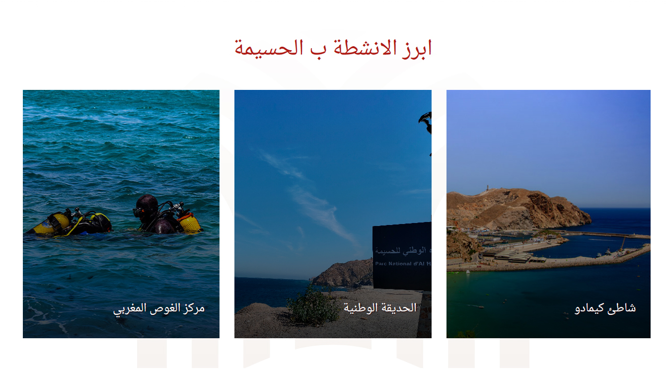 المياه الزرقاء للبحر الأبيض المتوسط، الضوء، والموجات الرقيقة والساحل الذي يشكل الخطوط العريضة لواحد من الخلجان الأكثر روعة في المغرب: هذه هي طبيعة المشهد الذي ينتظرك في الحسيمة. إن المكان يشبه الفردس على الأرض. استرخ ممدودا على كرسي الصالة على واحد من العديد من الشواطئ القريبة، حيث يمكنك الاستمتاع بأشعة الشمس والتشمس بكل ما تحمله الكلمة من معنى. وتحت هذه السماء الزرقاء إلى الأبد، فإن الاسترخاء يأخذ الأولوية!